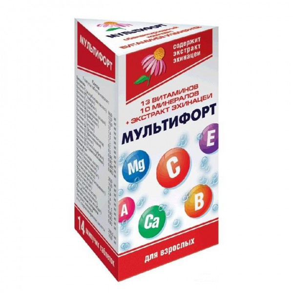 «Мультифорт» - это сбалансированный комплекс из 13 витаминов, 10 минералов и растительного экстракта эхинацеи в шипучей таблетке для взрослых. «Мультифорт» рекомендуется для защиты организма от простудных заболеваний, восстановления сил после болезни и в качестве дополнительного источника энергии.